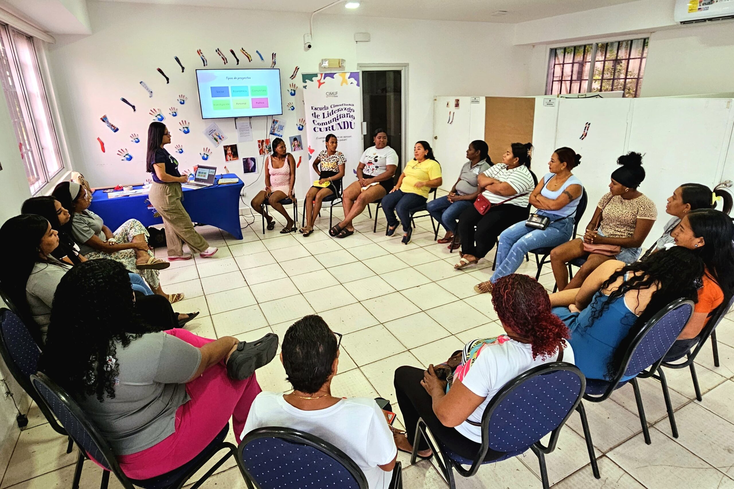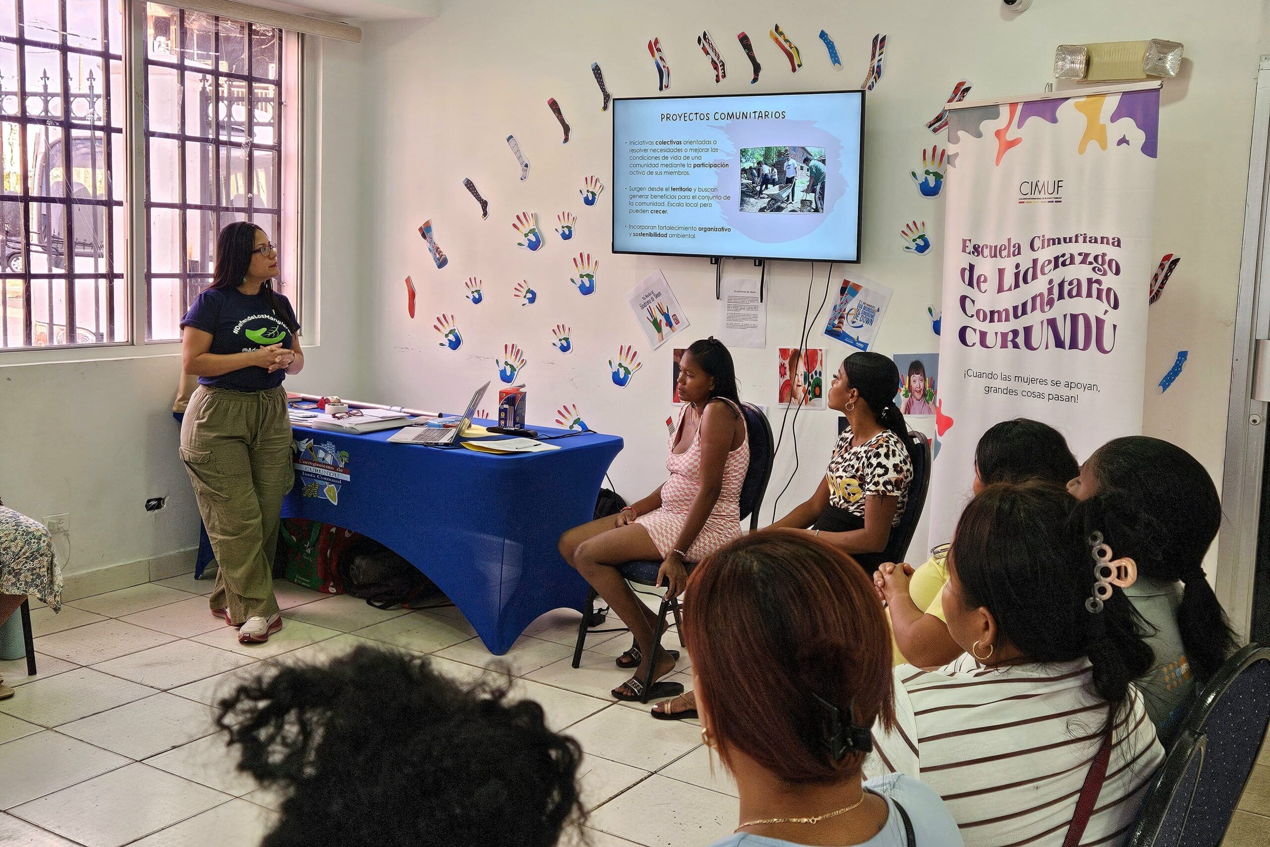 Participamos en la Escuela de Liderazgos Comunitarios para Mujeres en Curundú con un taller sobre proyectos comunitarios con enfoque de género y sostenibilidad.